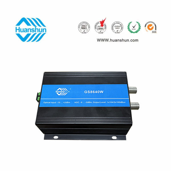 | 樓棟光接收機 | GS8640W | 47~860MHz,-7~+2dBm/RF 1×106或2×102dBuv,電調(diào)輸出電平和斜率均衡,外置 90~255V-12V 1A 電源適配器 |